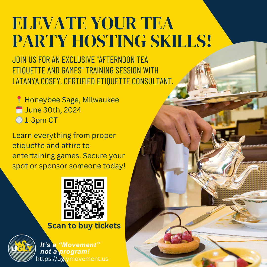Join us for an exclusive and enriching experience designed for tea enthusiasts and aspiring hosts alike. This “Afternoon Tea Etiquette and Games” training event will be led by LaTanya Cosey, Certified Etiquette Consultant and founder of U.G.L.Y. (Understanding God’s Love for You Inc.) and U Gotta Love You L.L.C.